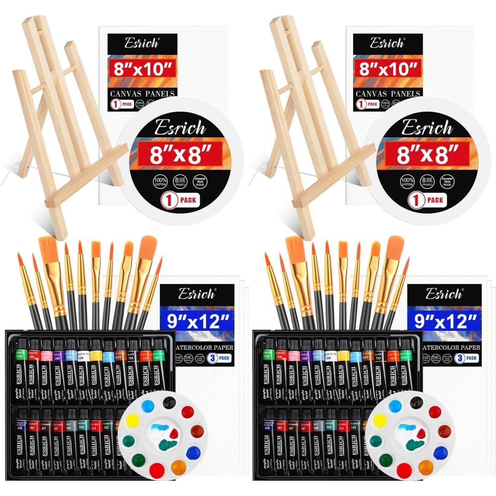 ESRICH 82 PCS Acrylic Paint Canvas Set,48Color Acrylic Painting Kit, Painting Supplies Kit with Wood Easel,Brush,Canvases,Watercolor Paper, Acrylic Paint Kit for Kids Adults Artists