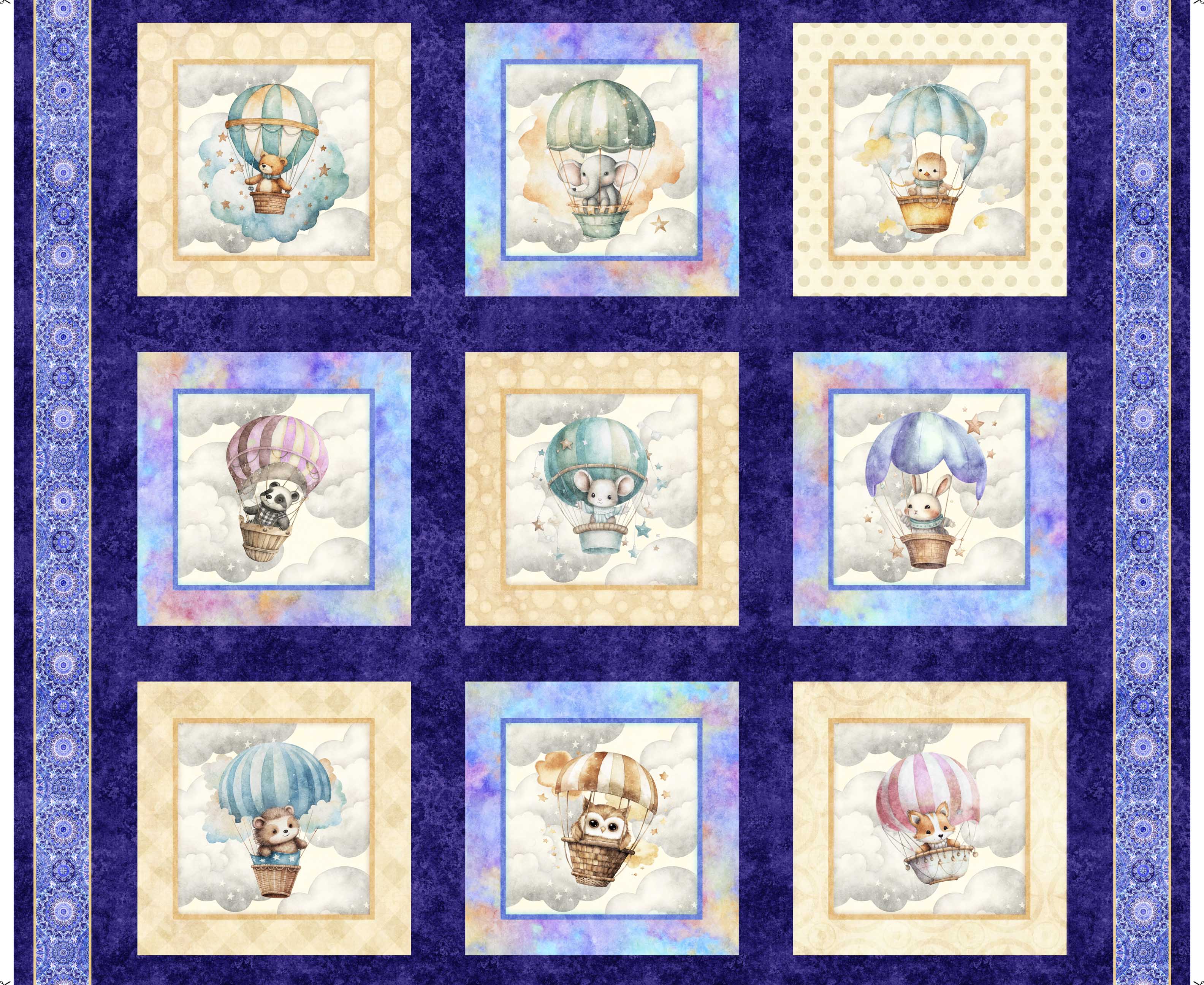 QT Fabrics Oh the Places Animals in Hot Air Balloon PANEL #2600-30665-Z